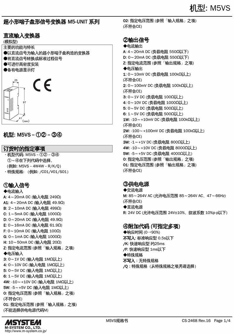 主要的功能與特長 以直流信號為輸入的超小形端子盤構造的變換器 將直流信號轉換成標準過程信號 可進行高密度安裝 備有電源顯示燈